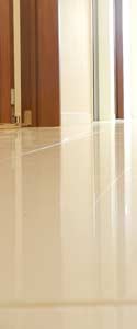 玄関廊下の床は高級感ある大理石の風合いをリアルに再現。傷やよごれに強くワックス掛けが不要ですのでお手入れが簡単。美しい鏡面仕上げの最高級グレードの床材がモダンな印象の空間を演出します。そのほか、リビングや寝室などは幅広の木目調がしっかりした意匠のフローリング。キャスター傷や落下傷に強く、汚染性に優れたワックス不要タイプを使用しています。