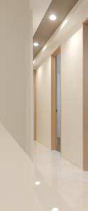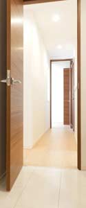 ハイドアを採用しています(水回りを除く)。ハイドアとは通常よりも高さのあるドアということです。天井付近までドアがあることで、スッキリとした高級感を演出するだけでなく、開口部が通常よりも広い分、室内空間の広々感が得られるようになっています。