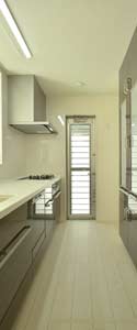インテリアと一体化するシンプルでありながらスタイリッシュなデザイン。 ワークトップ、シンクを人工大理石でスッキリとした見た目にしています。 食器洗浄乾燥機、ガラストップガスコンロ、無水両面焼きグリル、浄水器一体型水栓、ソフトクローズタイプの引き出しと機能面でも充実したグレードです。